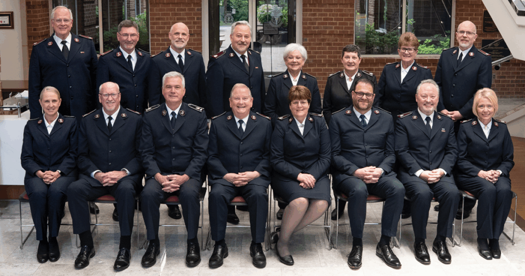The Salvation Army has a unique and well-defined leadership structure. Above all, the Army acknowledges God as our ultimate authority. This truth is reflected in our doctrinal statements, foundational documents and mission statement. To ensure that this aim is upheld, we rely on a human leadership structure grounded in prayerful obedience. Those appointed to lead regard their responsibilities as a divine calling to be God’s representatives and servants to those they lead.